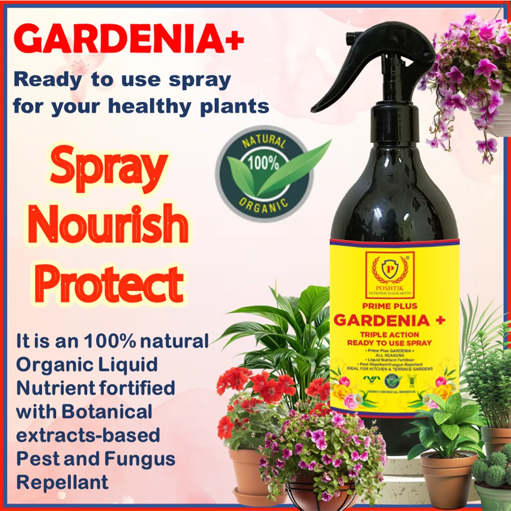 - GARDENIA + contains Micro & Macro nutrients, naturally occurring NPK, Vitamins and Enzymes combined with Botanical extracts based Pest & Fungus Repellants