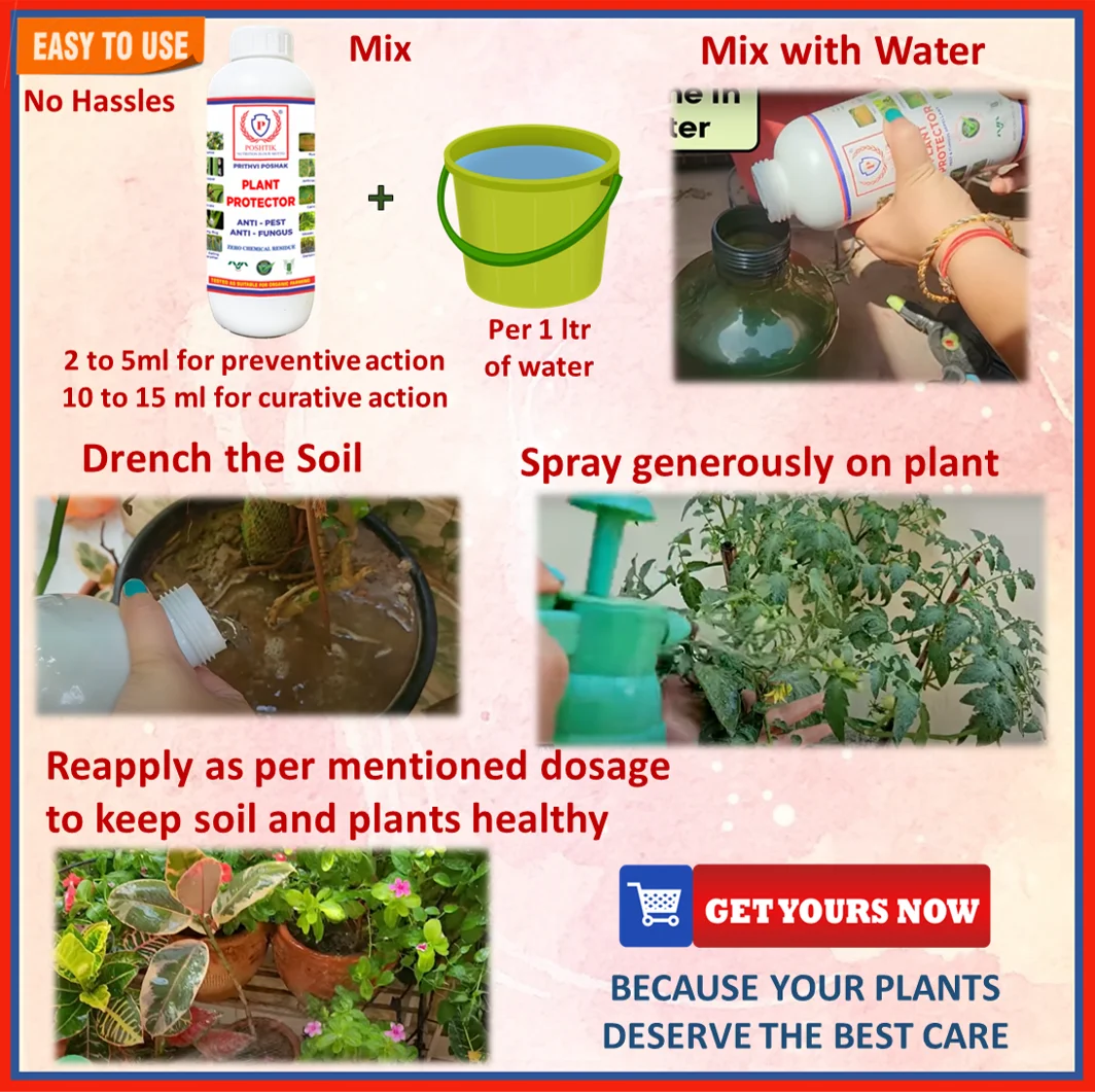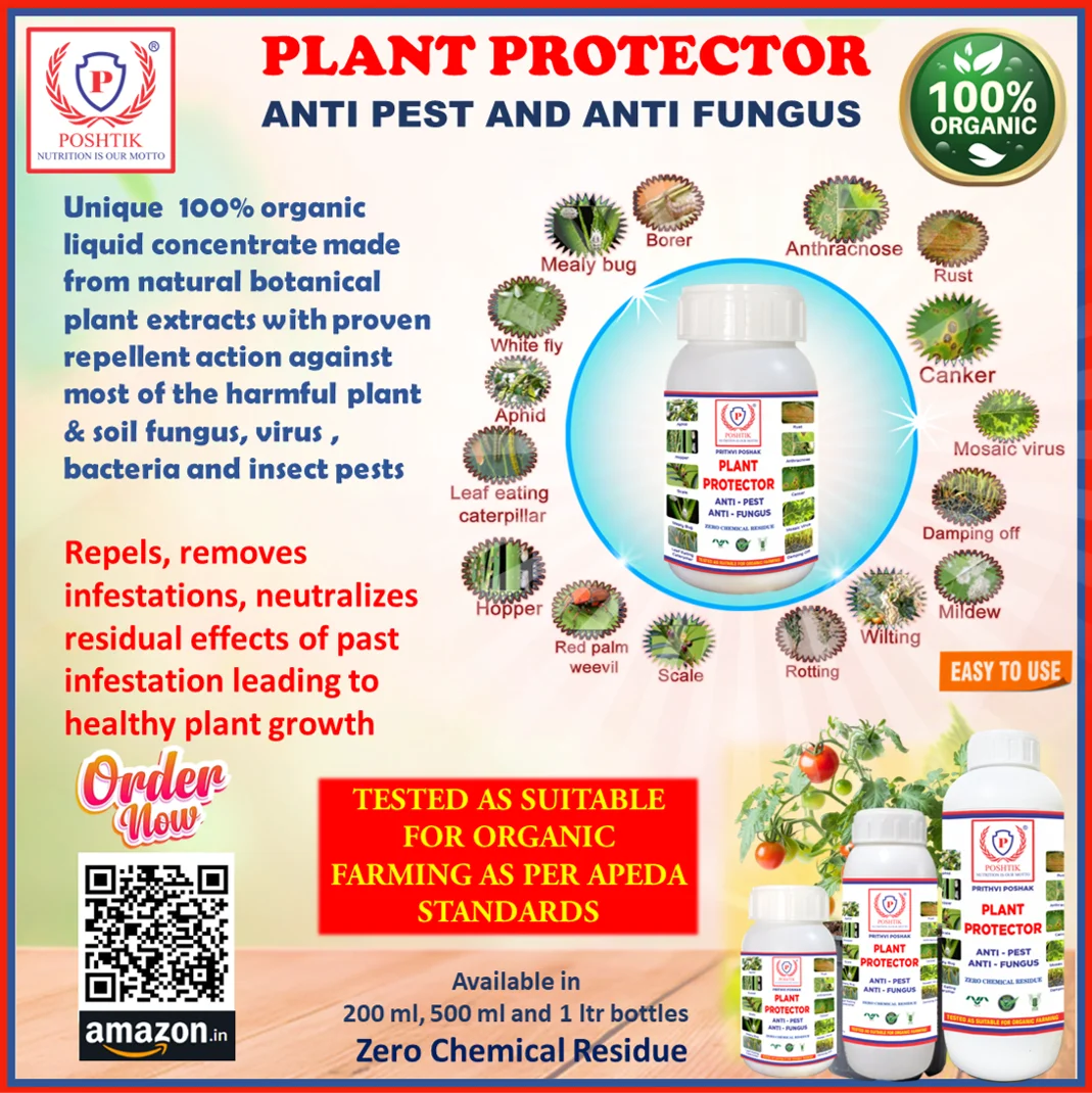 - PLANT PROTECTOR Preventive action - Repels & stops attack of Pests & Fungus, deters harmful virus and bacteria, prevents future soil infestation, prevents attack on Leaf & Plants - Preventive action is to be taken from before Pest / Fungus attack season to deter infection.